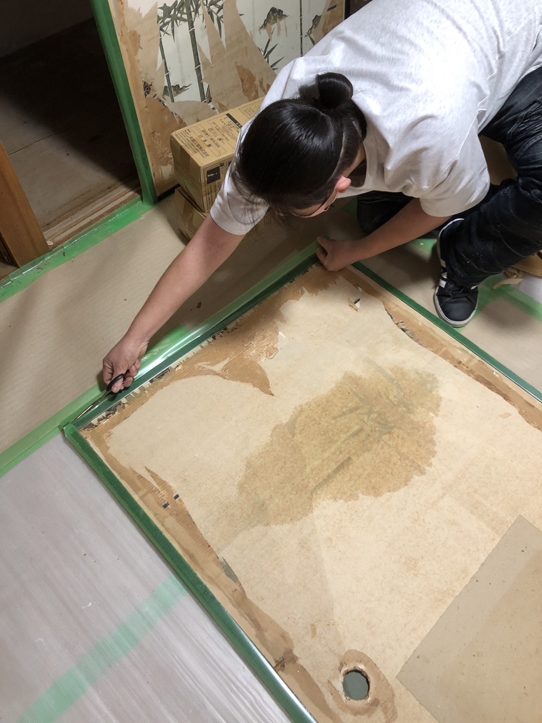 本日は、ふすま貼り作業を実施しました。